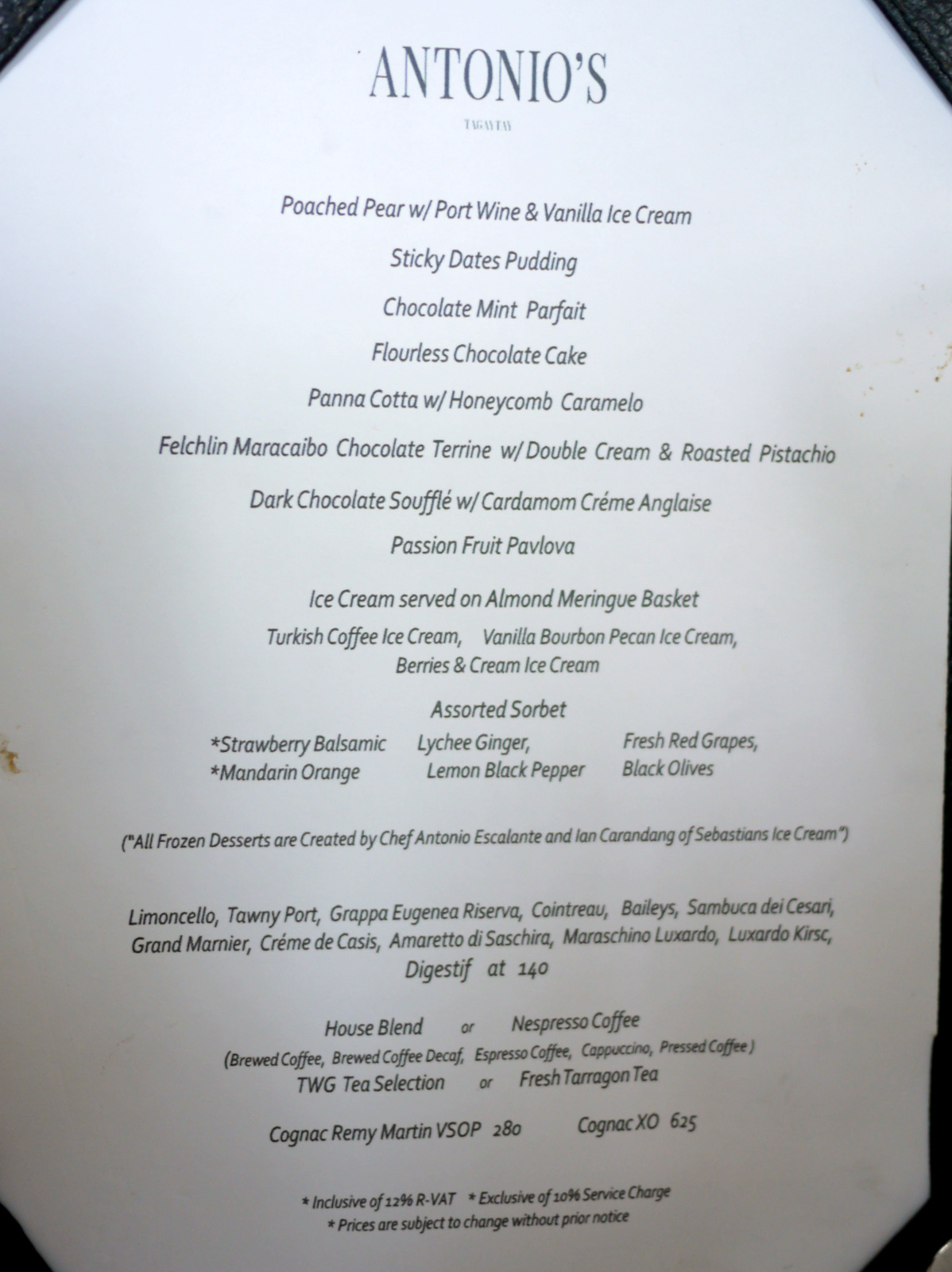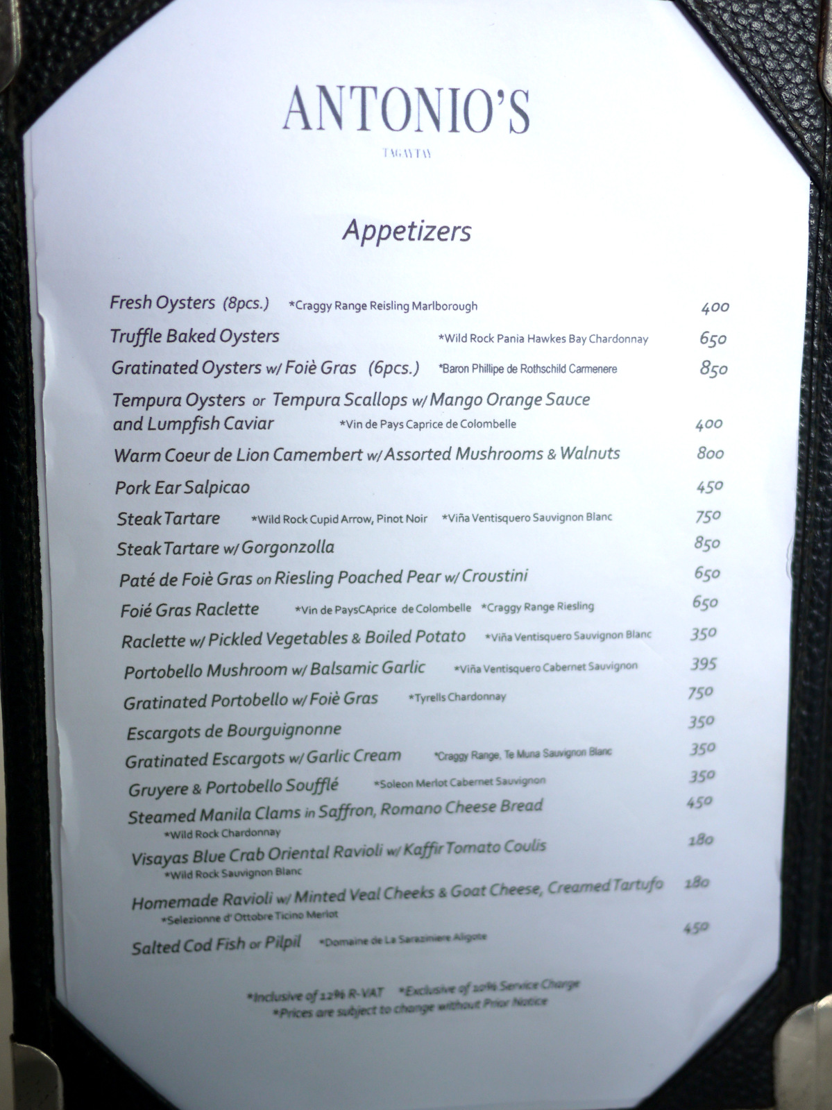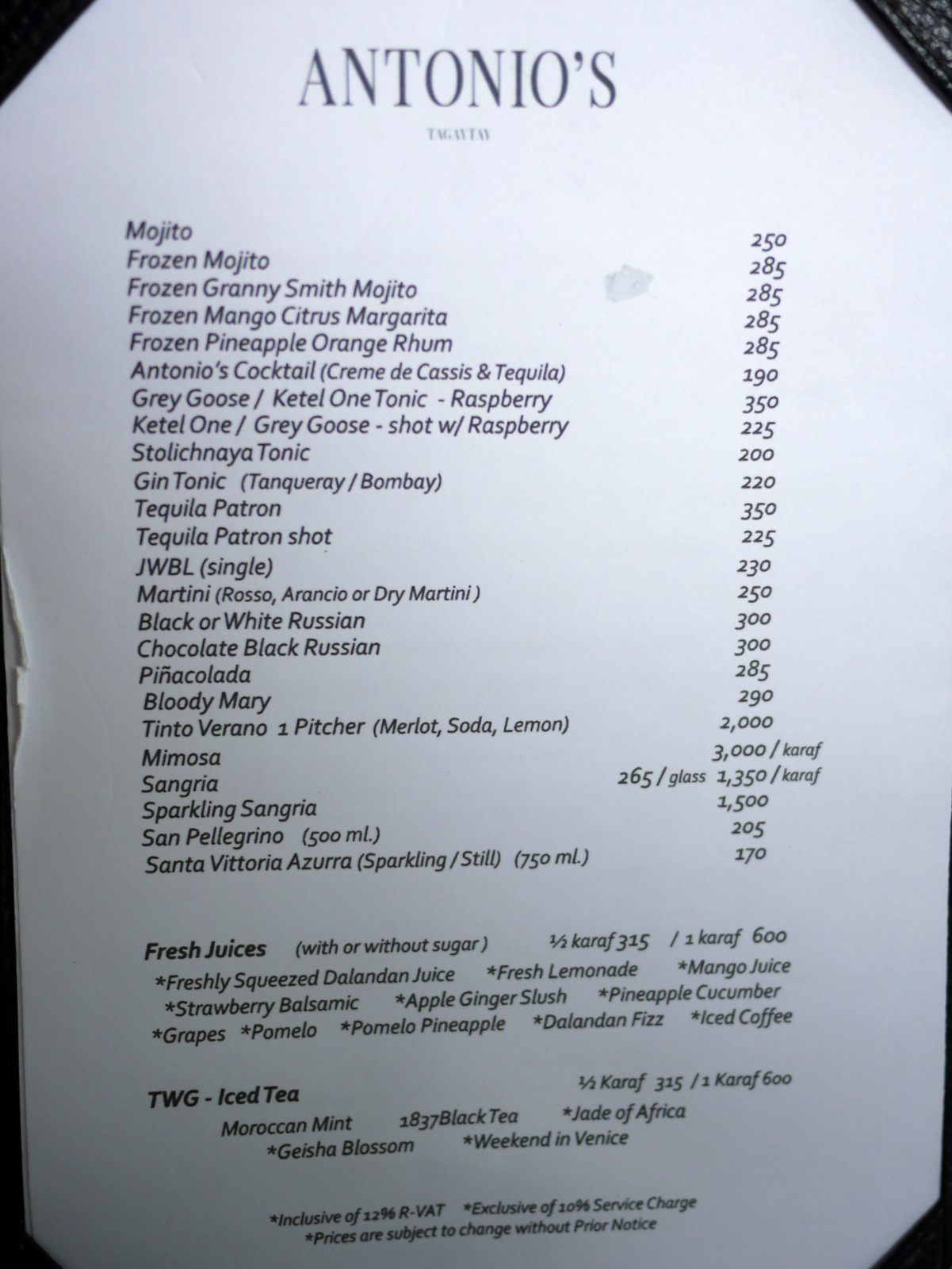 I go to Antonio’s in Tagaytay whenever my friend Ariel comes home from San Francisco because that’s his favorite restaurant. I don’t mind going to Antonio’s more than once a year though.