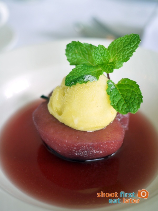 Instead of the vanilla ice that came with the poached pears my friends chose a different sorbet to give it a more exotic taste.
