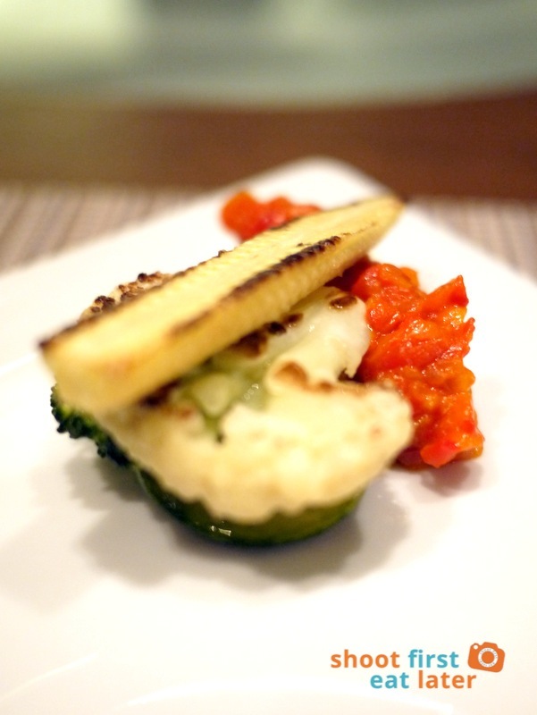 Even the veggies got a simple press on the plancha and I liked the charred taste of the fresh baby corn, flattened cauliflower and broccoli. Another group favorite was the sweet piperade made with chopped bell peppers. I pick out bell peppers on pizza but I loved this sauce.