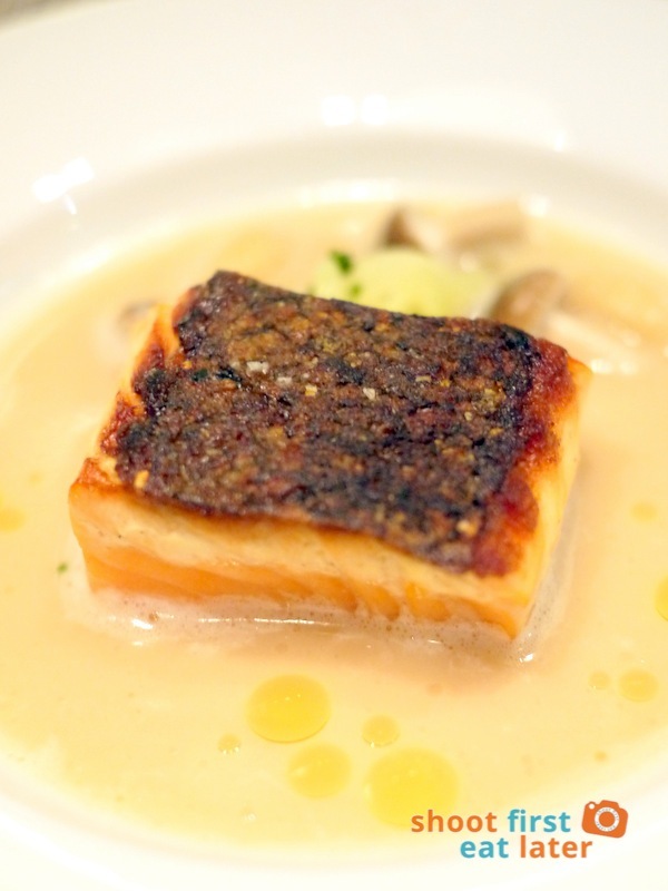 One of my favorite (yes I have a lot) courses was the salmon. The bottom of the fish was barely cooked while the skin of the fish was fried until it was super crispy. I normally don’t eat the skin of the fish but this was fabulous. The fish sat in a light delicate broth made from homard lobster and honkareibushi nage. I wish the broth was tastier but other than that it was perfect.