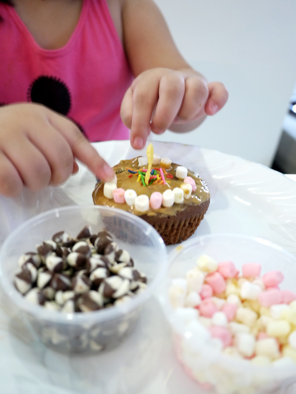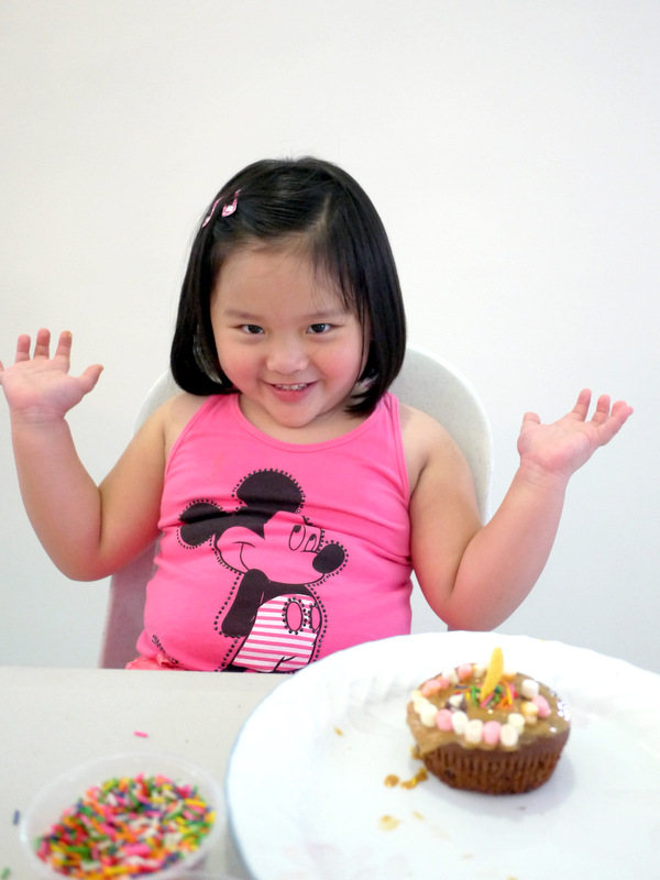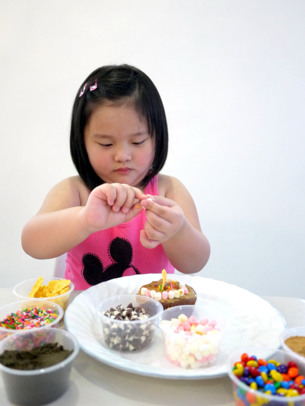 The best part is eating your creations after. At first Bree didn’t want to eat her beautiful works of art and wanted to show it to her parents but I convinced her to take a big bite and we will just make more. She really enjoyed the soft, fluffy mamon made even yummier with an assortment of toppings.
