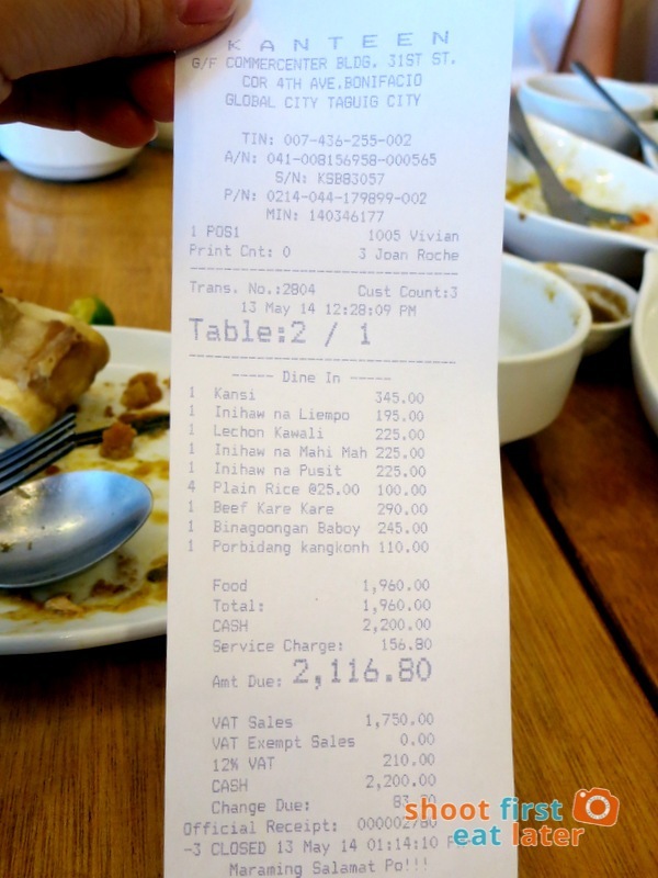 For our Tuesday lunch I suggested Kanteen in The Fort which served Ilonggo food and my friends quickly agreed.